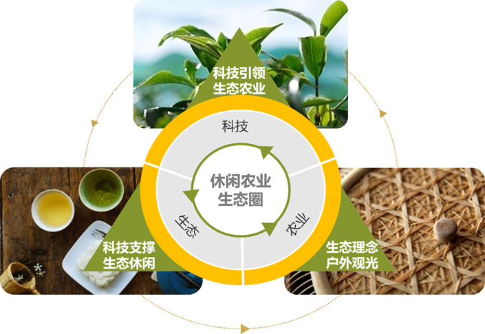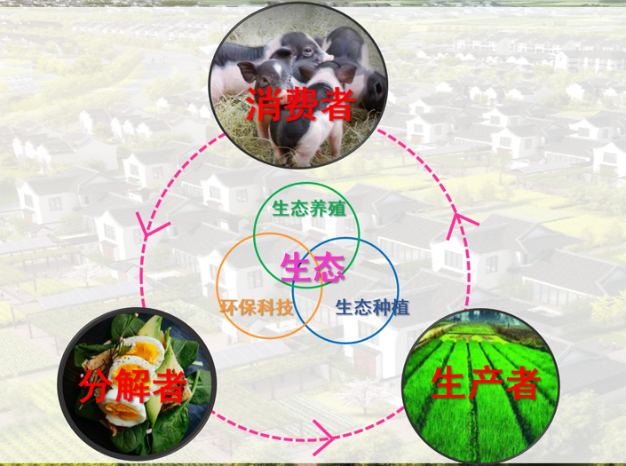 利用环保科技生物技术,构建以环保科技、动植物、景观、农业四位一体的现代农业园生态循环。