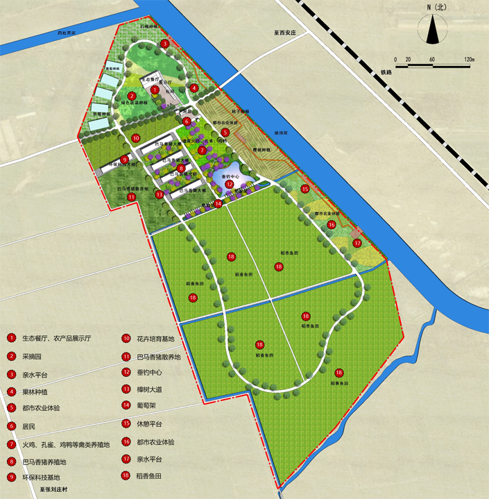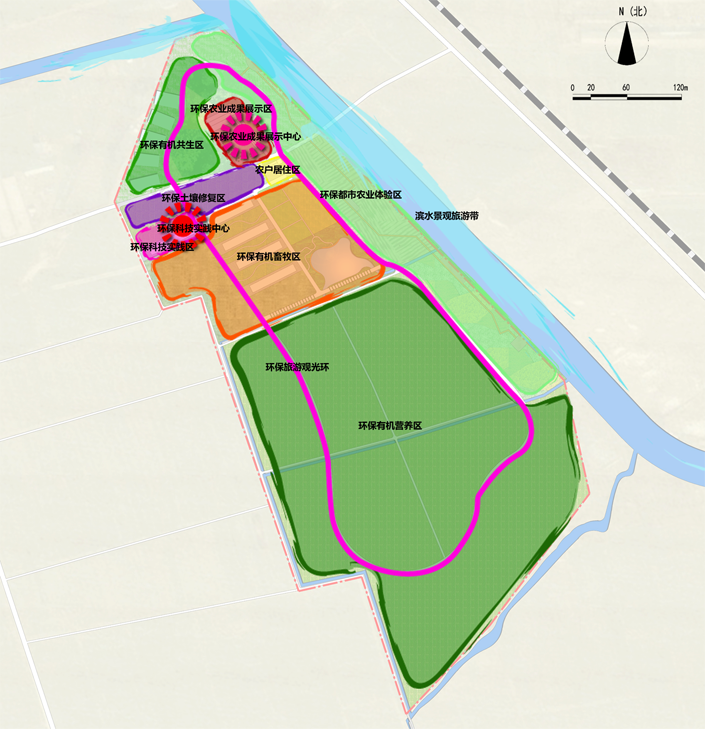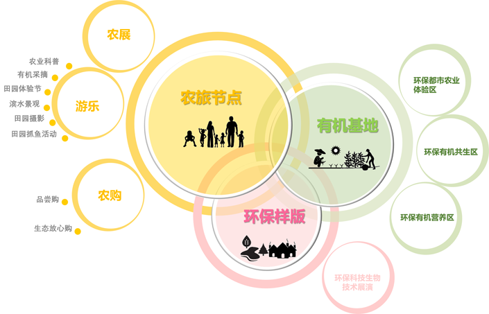 “八片区”:环保科技实践区、环保有机畜牧区、环保农业成果展示区、农户居住区、环保有机共生区、环保土壤修复区、环保都市农业体验区、环保有机营养区。